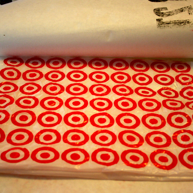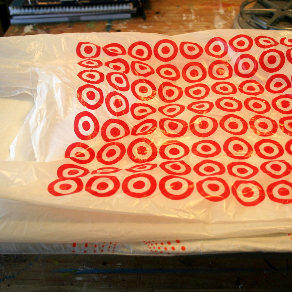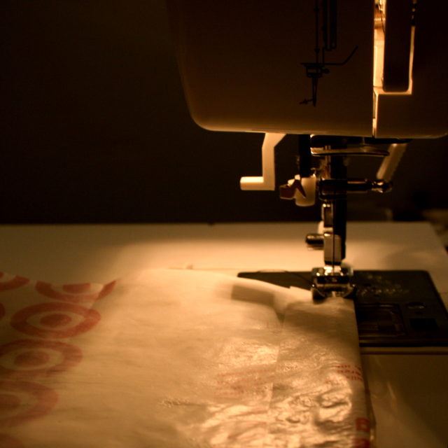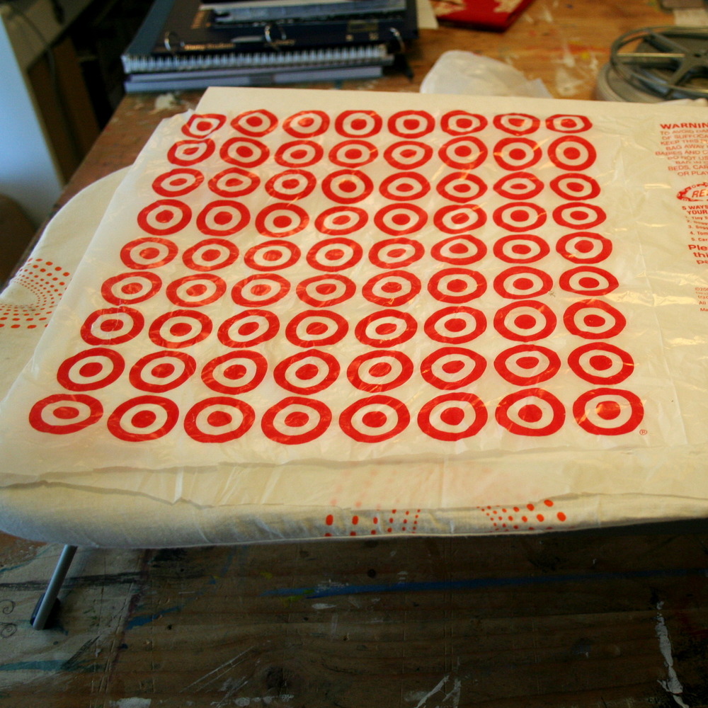 3. Start with a medium low setting on your iron, it is always better to start cooler and get hotter if you need to. Iron over the butcher paper and the plastic bag with quick motions, never letting the iron rest in one place for too long, for about 15-20 seconds. You can set the iron aside to check and see your progress. Your plastic bags should start fusing together, a good indication of this is when logos or images start showing through the layers and the plastic begins to feel thicker and more sturdy. Also, if you rub your fingers (be careful it will be hot!) along the plastic there should be no give or bubbling (like there is an air pocket).