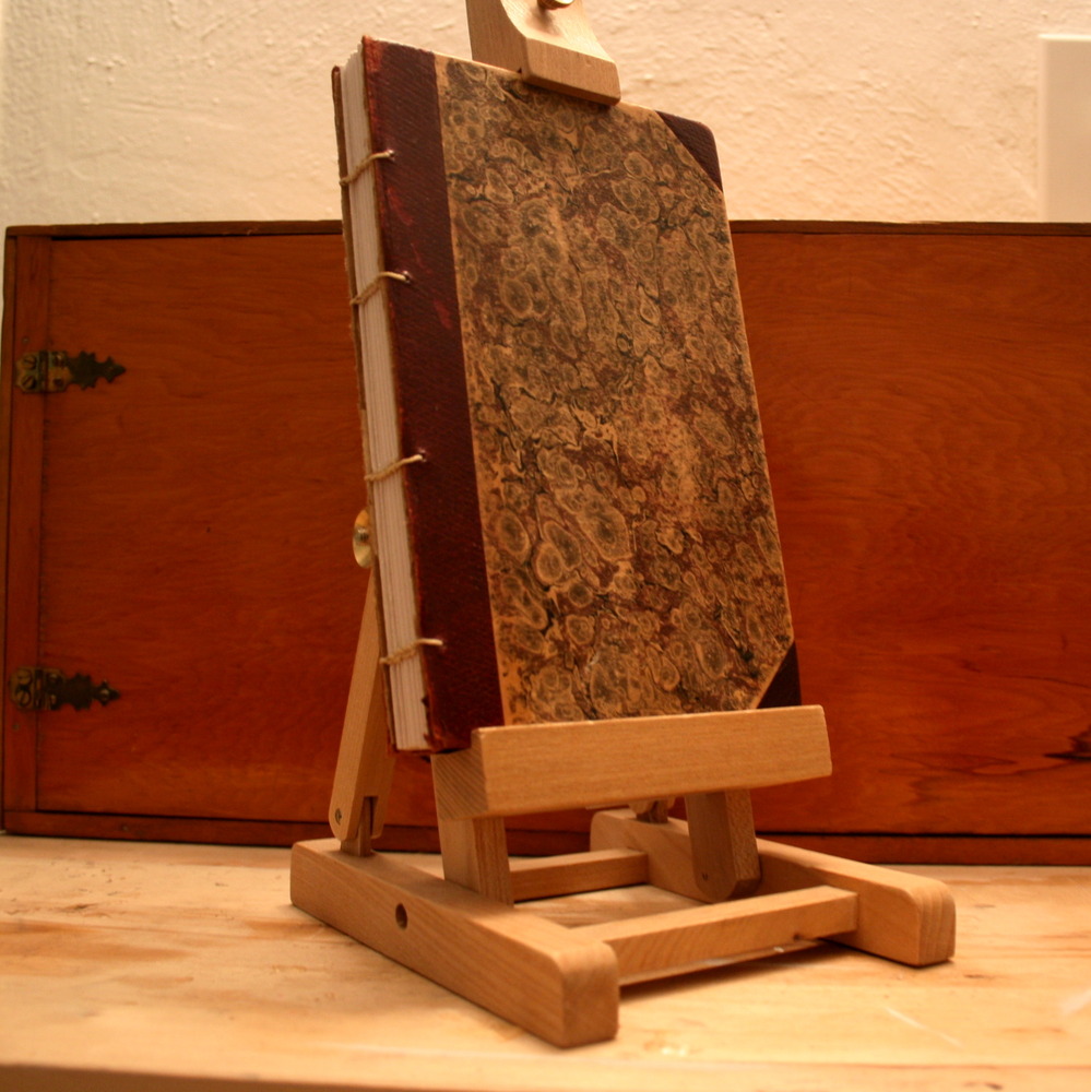 This is a hard bound Coptic stitch journal. The covers are made from a marble vintage book, and are 5″ x 8″. It has 140 pages of blank medium weight newsprint, great for any sketch artist or avid creative journal. I will be adding it to my store soon, so if you would like it for yourself, be sure to keep your eyes open!