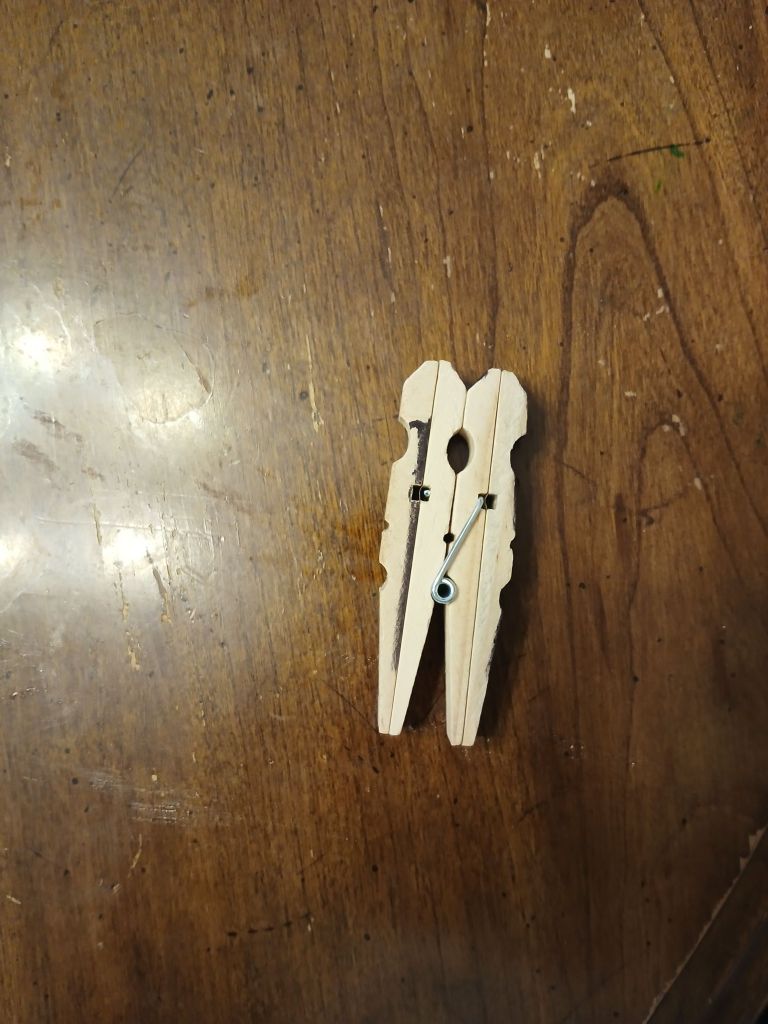 The boy is fairly obsessed with toys that have articulating jaws. So to make the head, I doubled up some clothespins, colored them black, and covered them with white craft foam. By sewing the corners of the top piece with red embroidery thread, I was able to both make the squarish shape of the head and include the eyes for the robot.