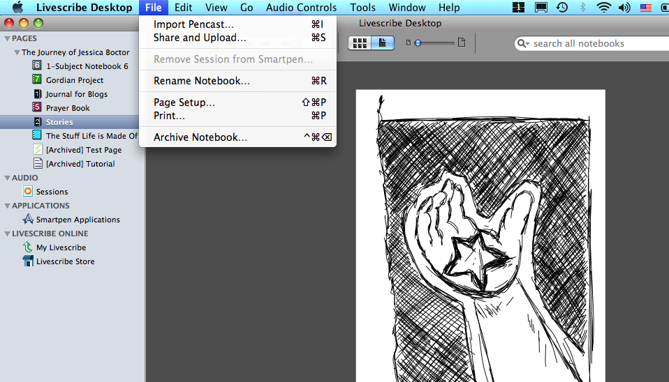 I am, by no means, a skilled graphic artist or a sketch artist for that matter. I was simply excited the Pulse pen lets me have instant digital copies of my doodles from my journals. However, I can see the possibilities. Especially when it only takes a few simple steps you to import any of your livescribe sketches into a photo editor, allowing you to mix graphic and hand made art.